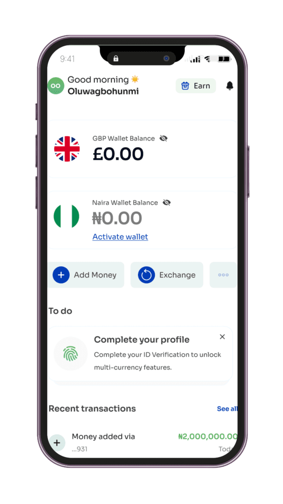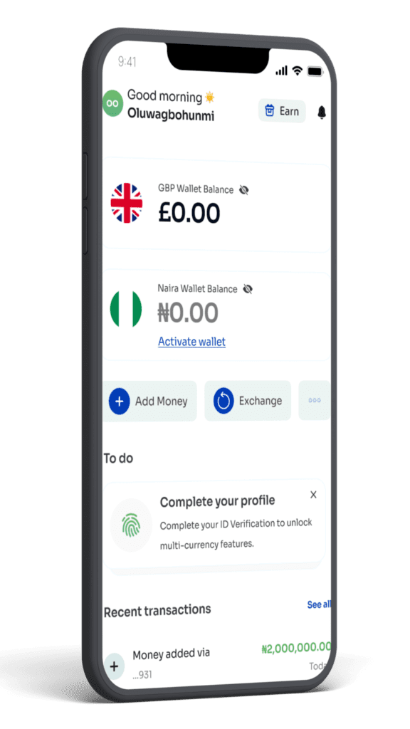 Multi-currency accounts (GBP, CAD, USD, NGN, GHS, KES) in seconds